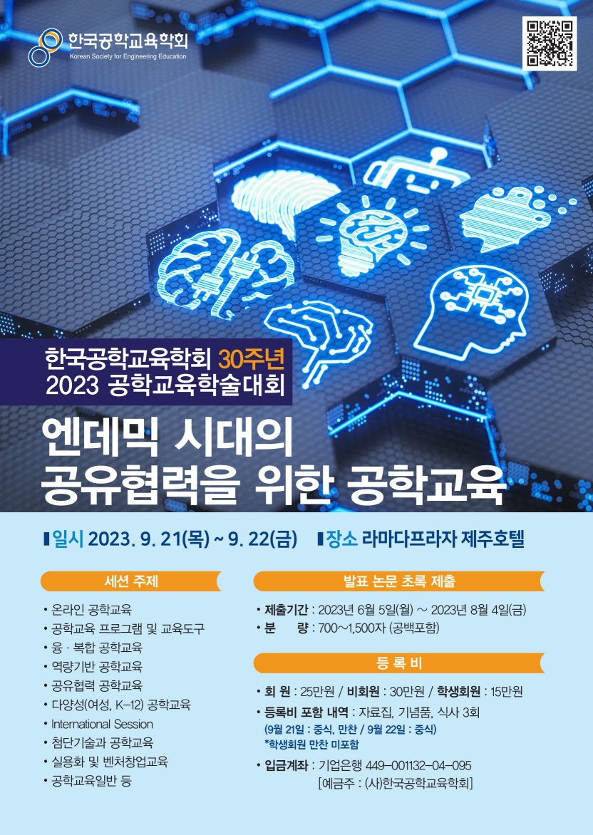 한국공학교육학회 30주년 기념 2023 공학교육학술대회가 다음과 같이 개최되오니 많은 관심과 참여 부탁드립니다.